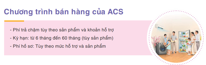 Với mục tiêu tạo điều kiện cho các hộ gia đình dể dàng đầu tư hệ năng lượng mặt trời áp mái, ngày 10/06/2022 MKSolar đã ký kết hợp tác với công ty ACS (trực thuộc tập đoàn AEON Nhật Bản) bán trả góp cho khách hàng. Một số điểm nổi bật của hình thức trả góp này là: thủ tục đơn giản, không thế chấp, không phí phạt và không phí bảo hiểm.
